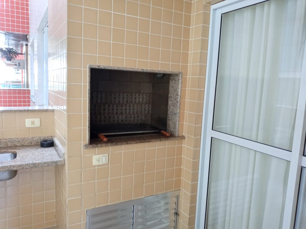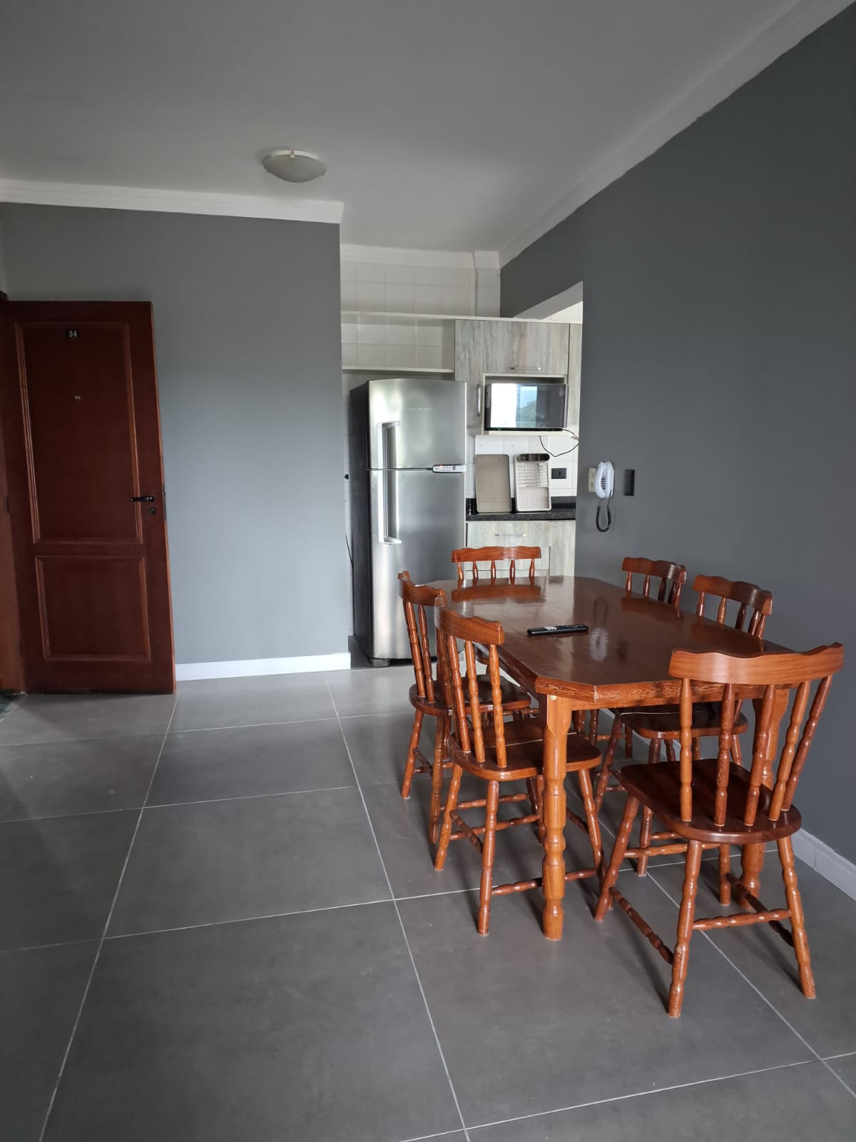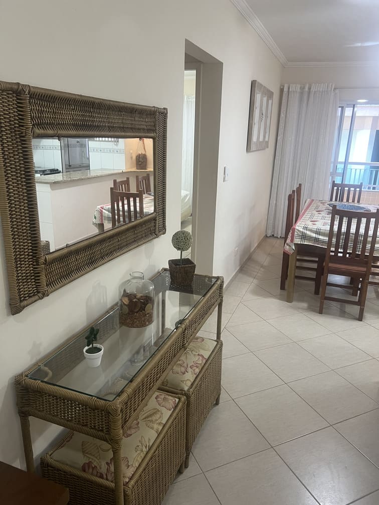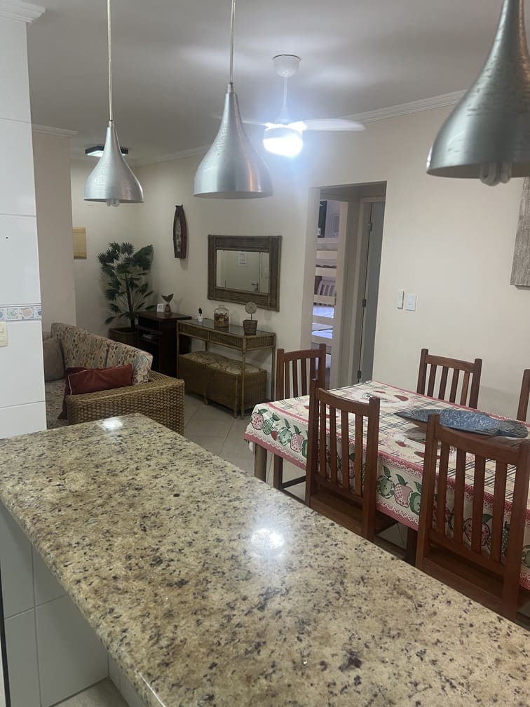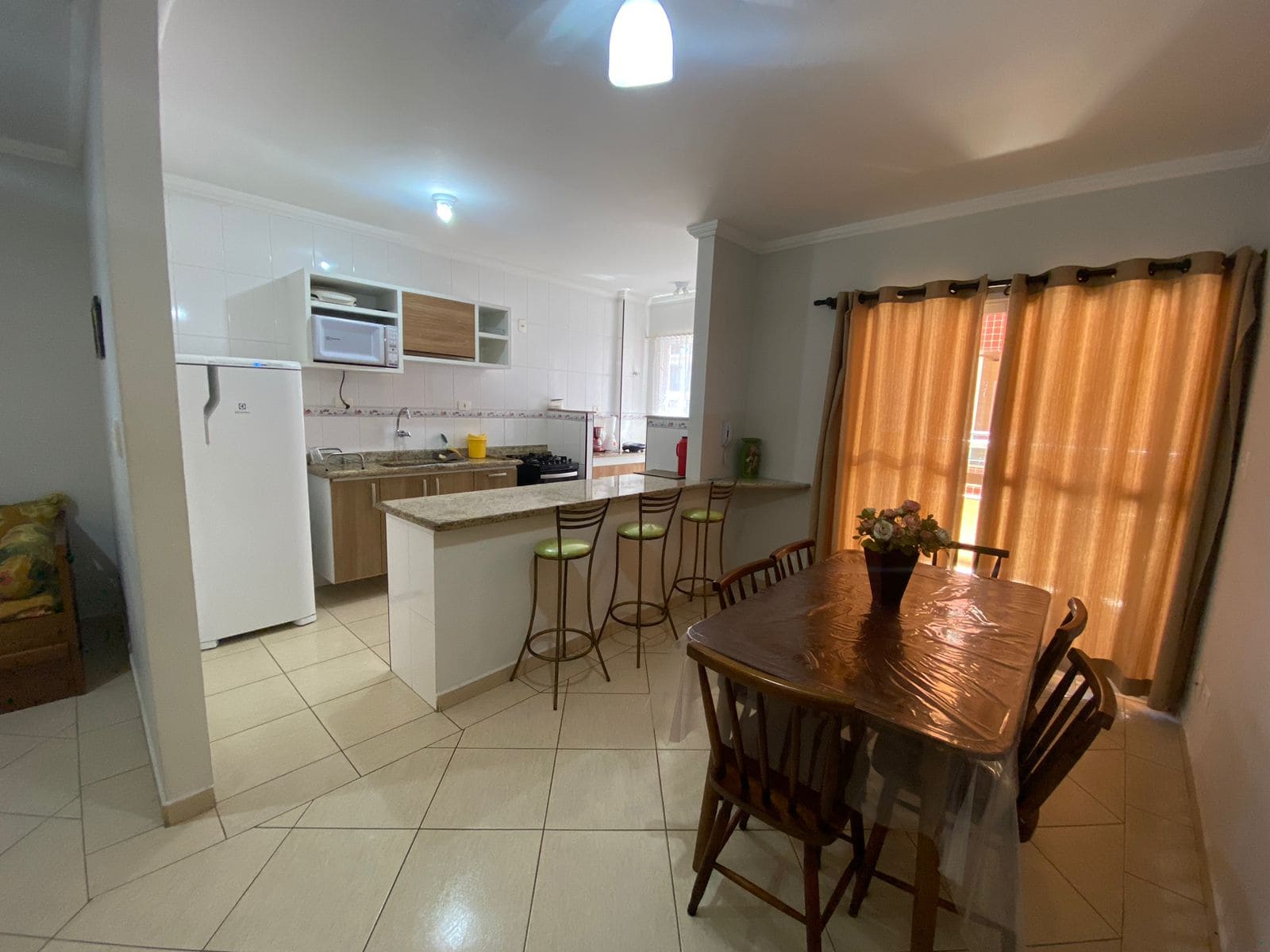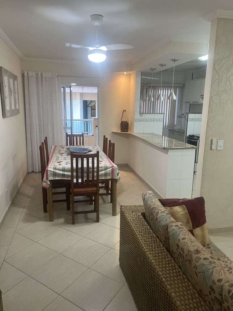 Descrição Completa: 2 dorm sendo 1 suite com ar condicionado e ventilador de teto, mais um banh social, sala de jantar, sala de tv , cozinha completa, varanda gourmet com churrasqueira, uma vaga de garagem coberta e possível conseguir mais uma vaga com o condomínio. Condomínio com piscina e mais churrasqueira na cobertura 150 mts da praia