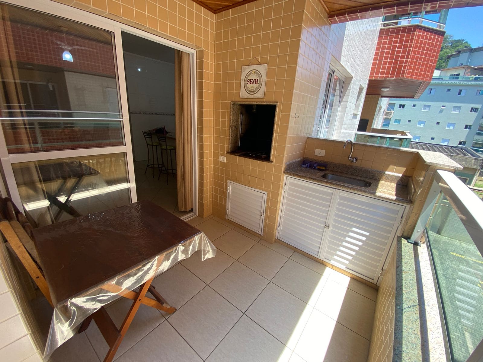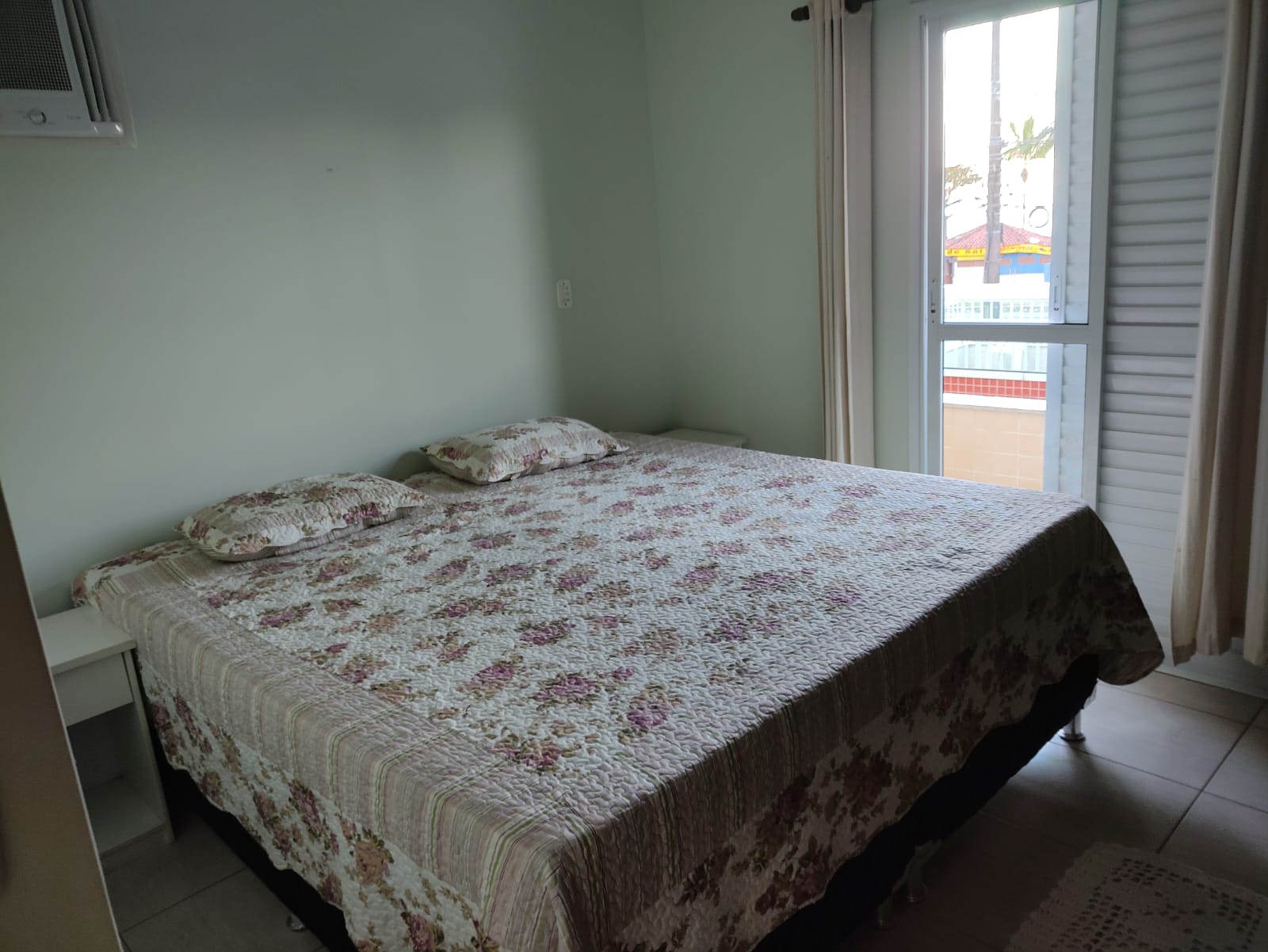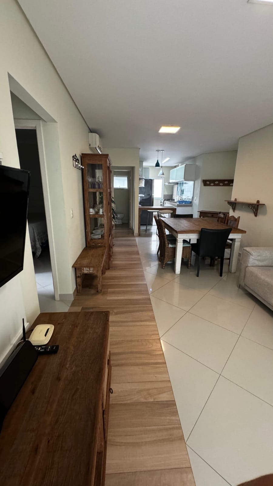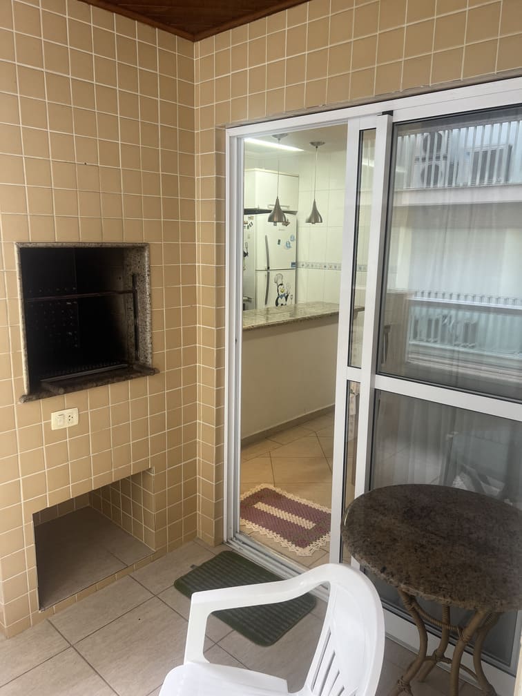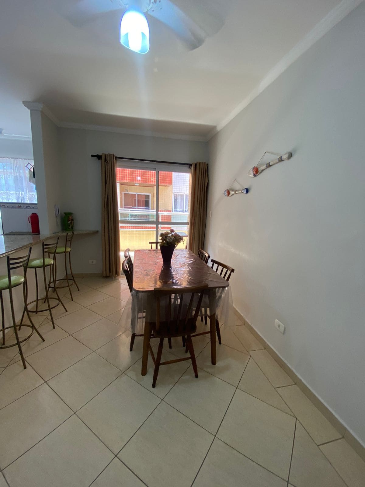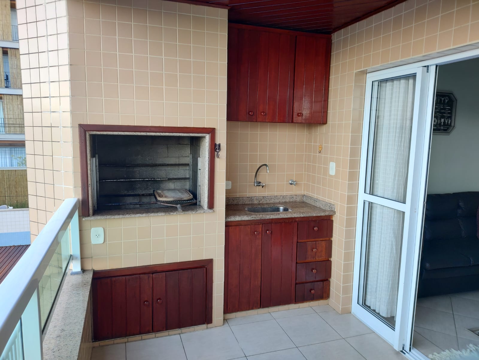 Descrição Completa: 2 dorm sendo 1 suite com ar condicionado e ventilador de teto, mais um banh social, sala de jantar, sala de tv , cozinha completa, varanda gourmet com churrasqueira, uma vaga de garagem coberta e possível conseguir mais uma vaga com o condomínio. Condomínio com piscina e mais churrasqueira na cobertura 150 mts da praia
