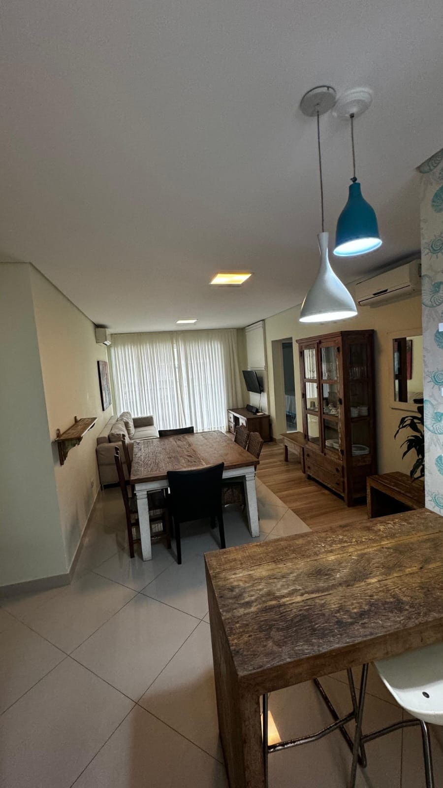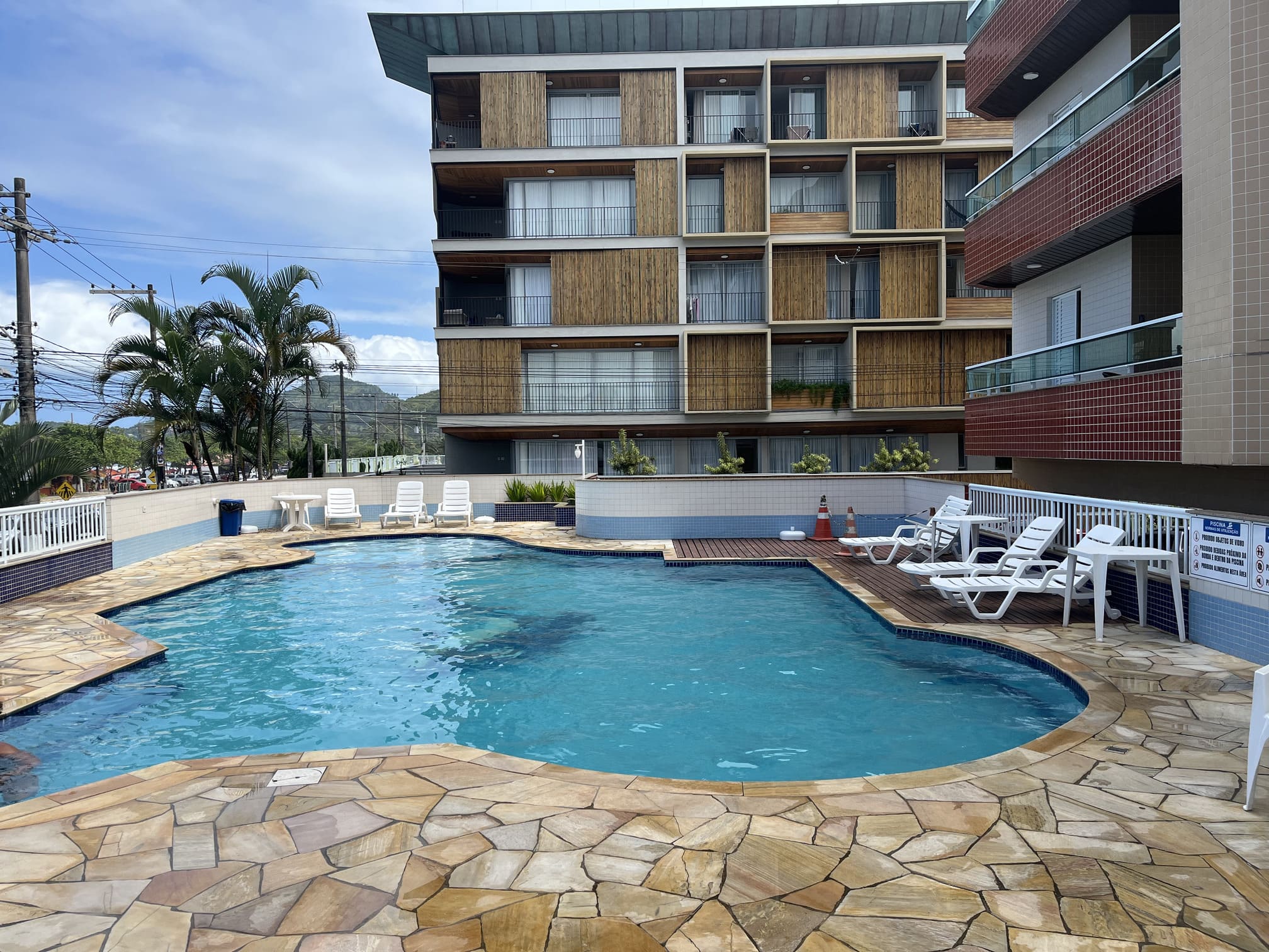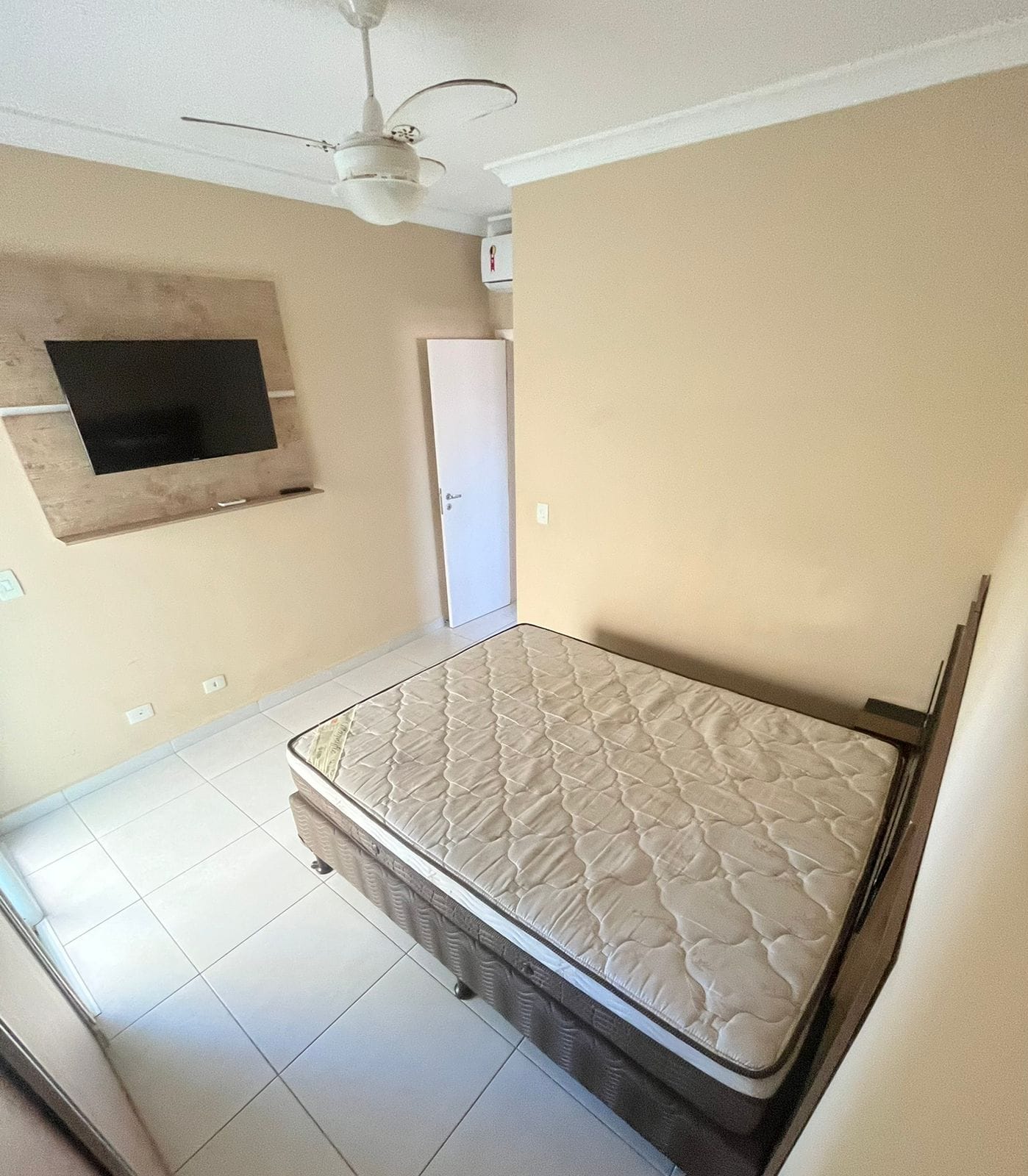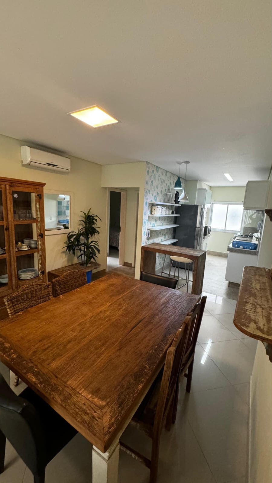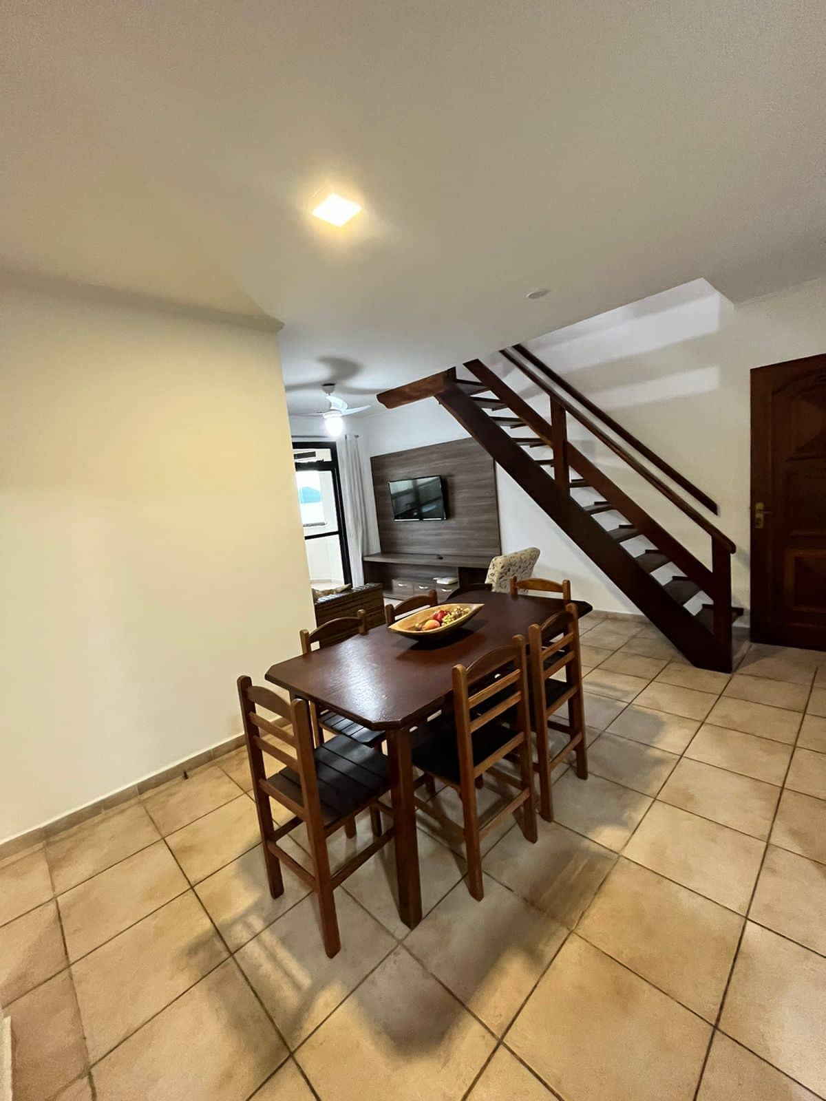 Descrição Completa: 2 dorm sendo 1 suite com ar condicionado e ventilador de teto, mais um banh social, sala de jantar, sala de tv , cozinha completa, varanda gourmet com churrasqueira, uma vaga de garagem coberta e possível conseguir mais uma vaga com o condomínio. Condomínio com piscina e mais churrasqueira na cobertura 150 mts da praia