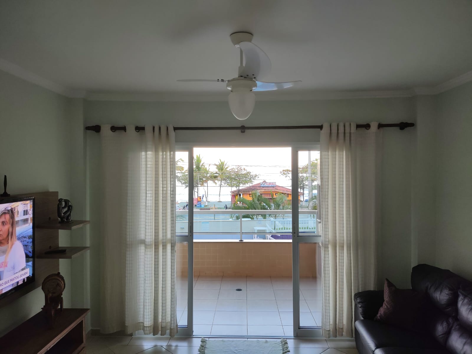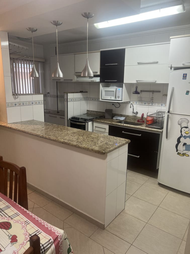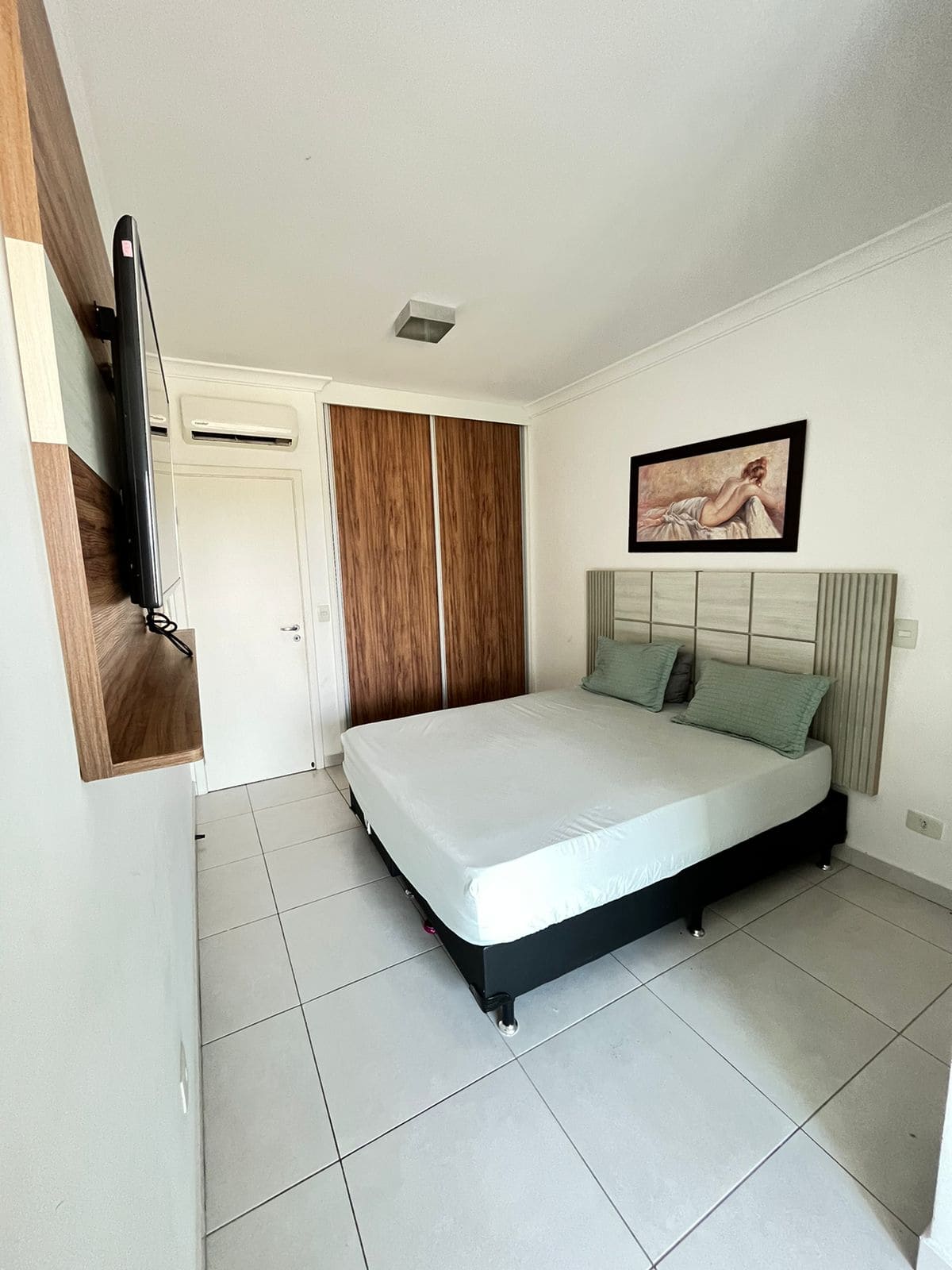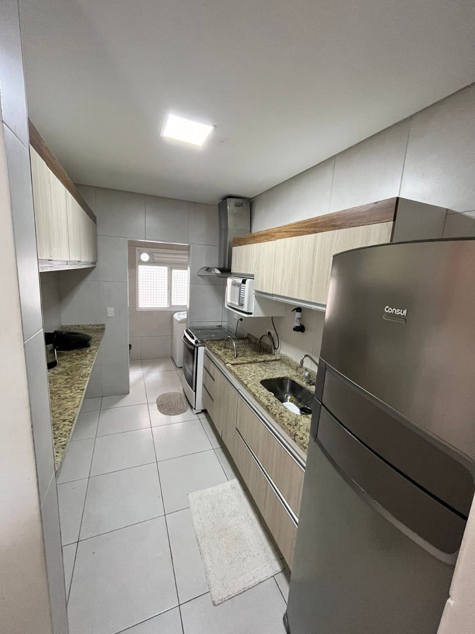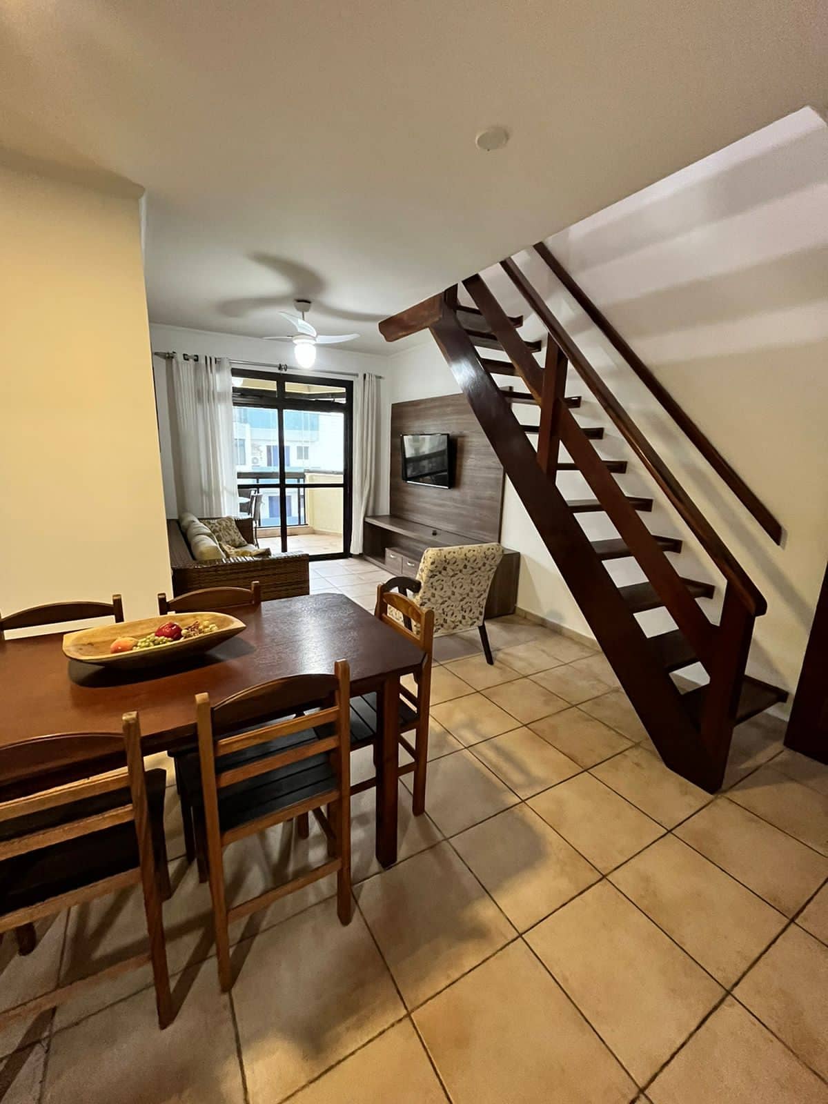 Descrição Completa: 2 dorm sendo 1 suite com ar condicionado e ventilador de teto, mais um banh social, sala de jantar, sala de tv , cozinha completa, varanda gourmet com churrasqueira, uma vaga de garagem coberta e possível conseguir mais uma vaga com o condomínio. Condomínio com piscina e mais churrasqueira na cobertura 150 mts da praia