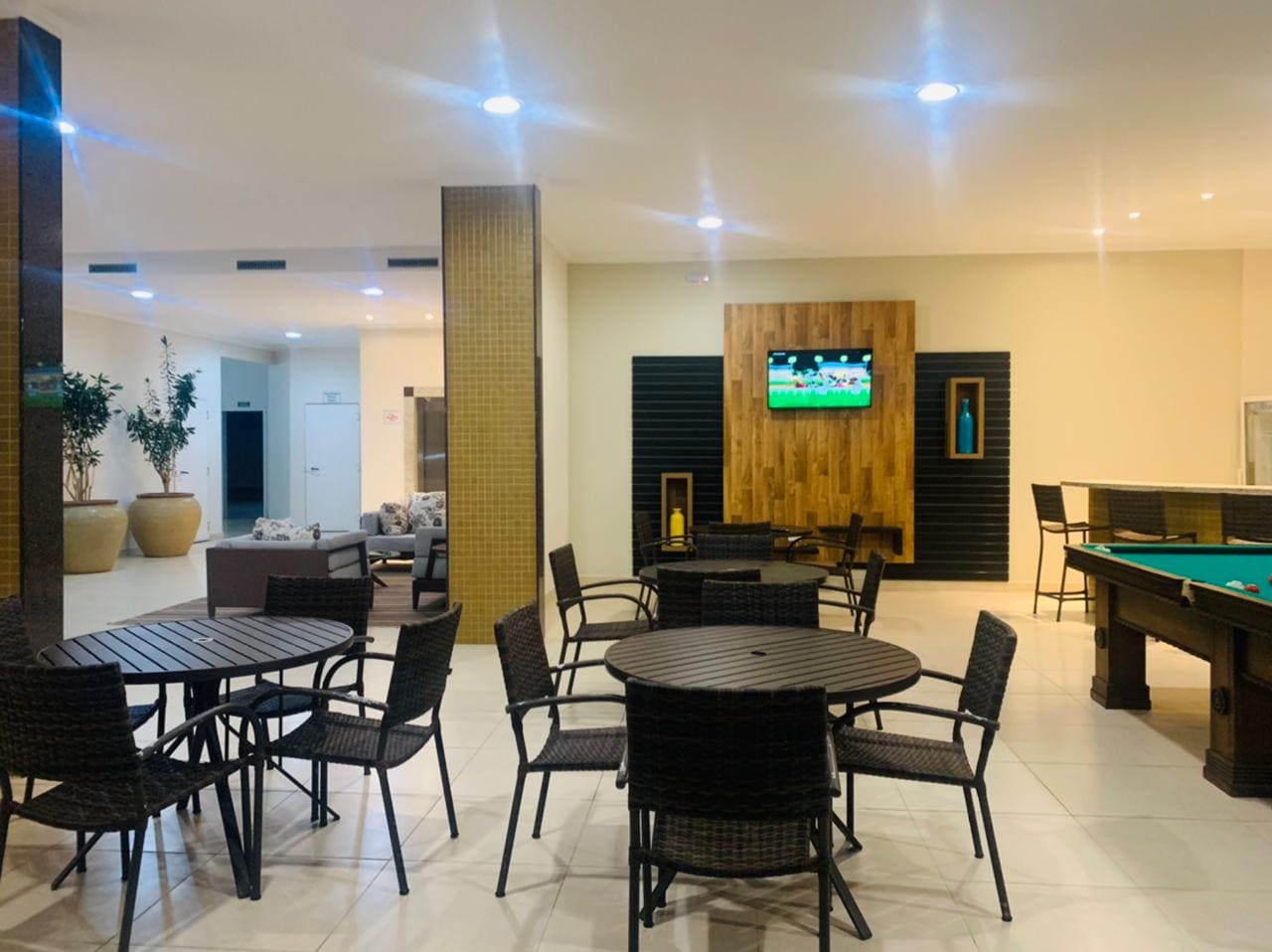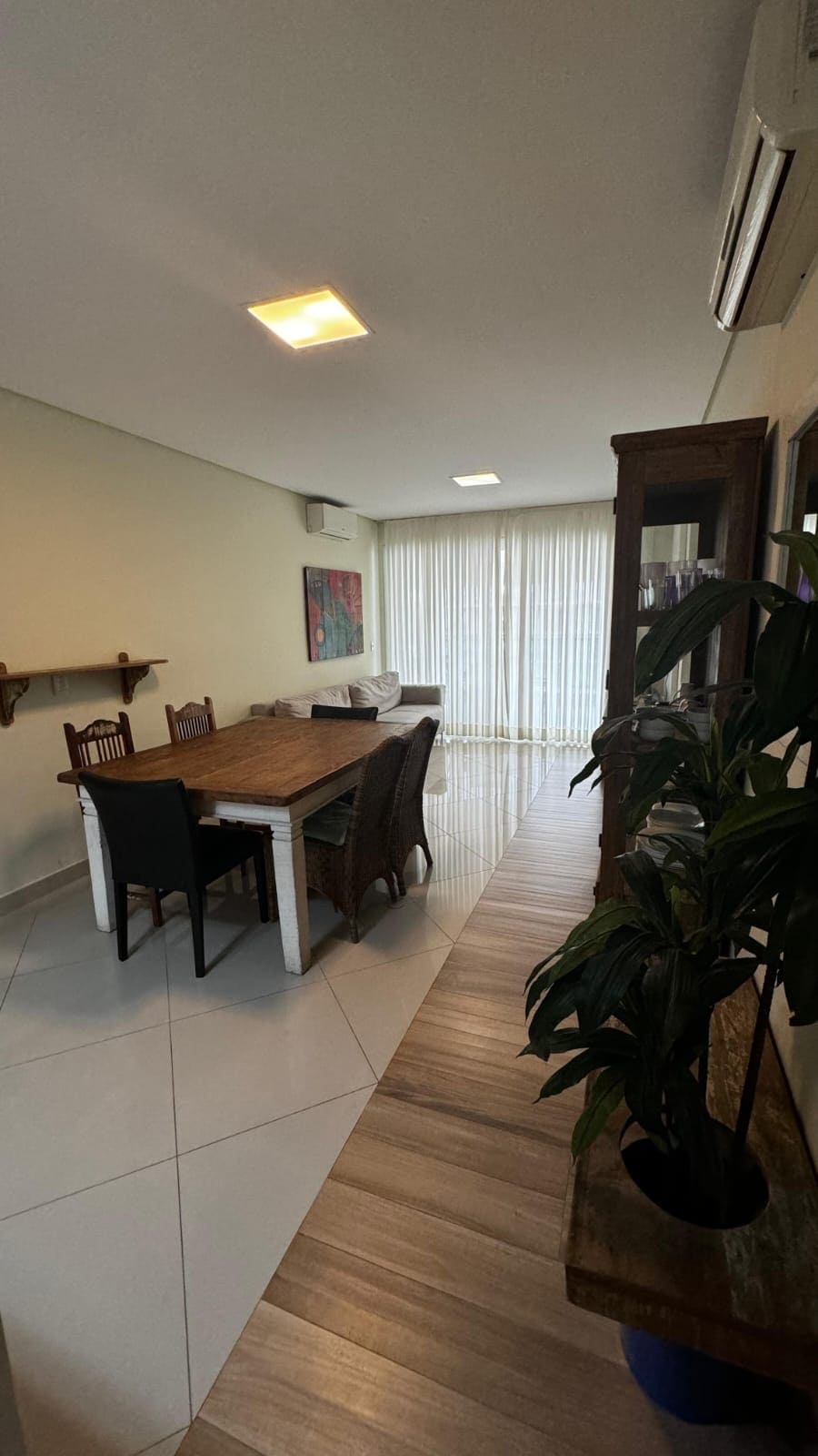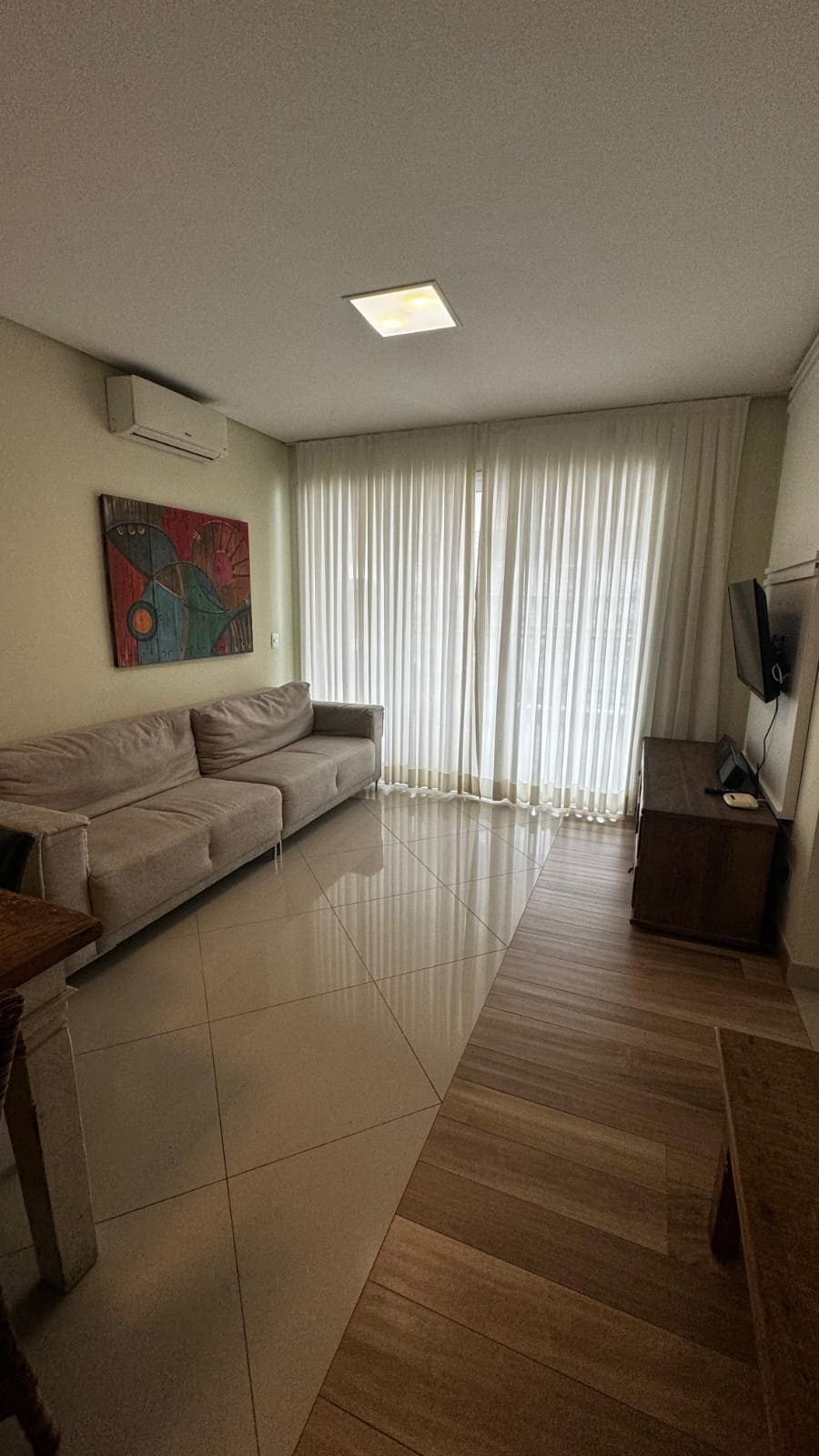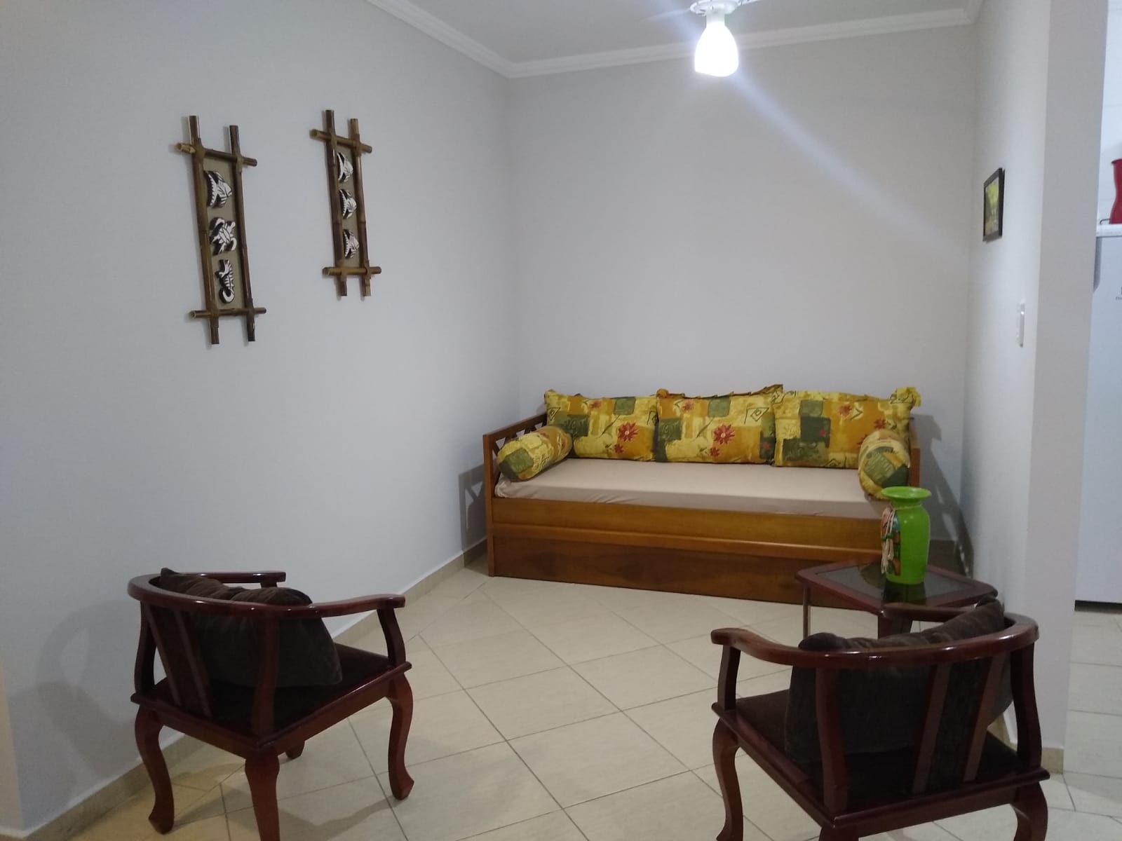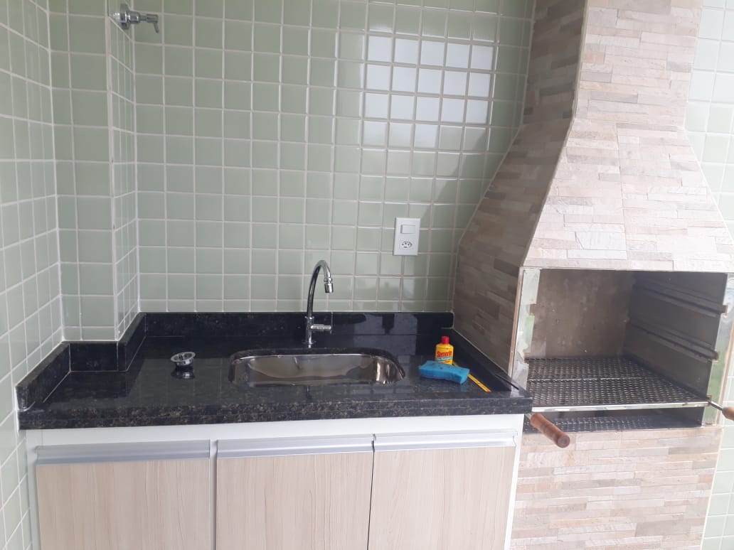 Descrição Completa: 2 dorm sendo 1 suite com ar condicionado e ventilador de teto, mais um banh social, sala de jantar, sala de tv , cozinha completa, varanda gourmet com churrasqueira, uma vaga de garagem coberta e possível conseguir mais uma vaga com o condomínio. Condomínio com piscina e mais churrasqueira na cobertura 150 mts da praia