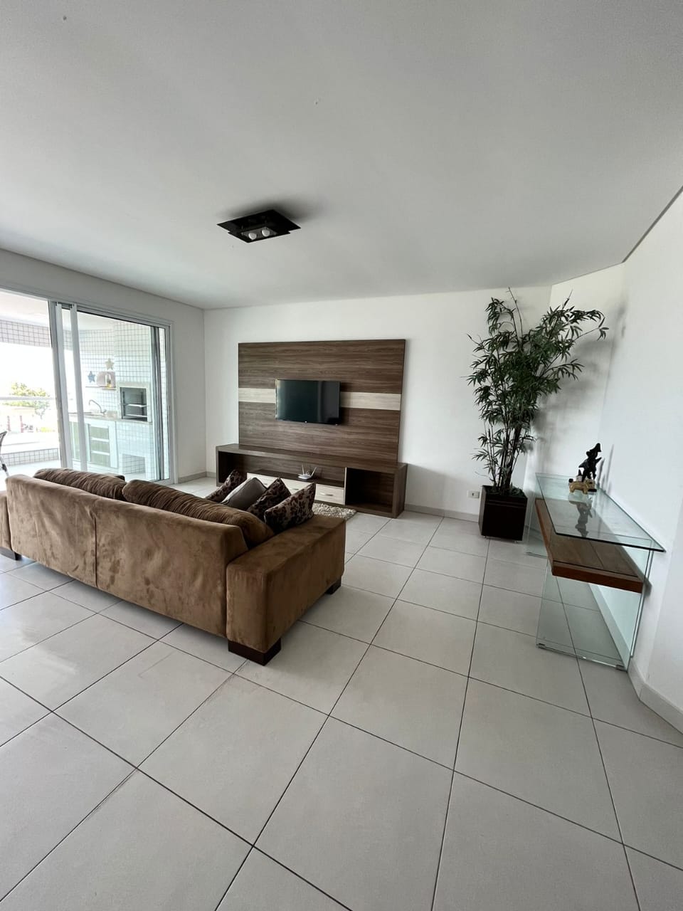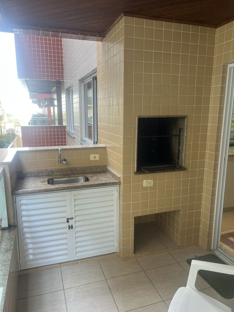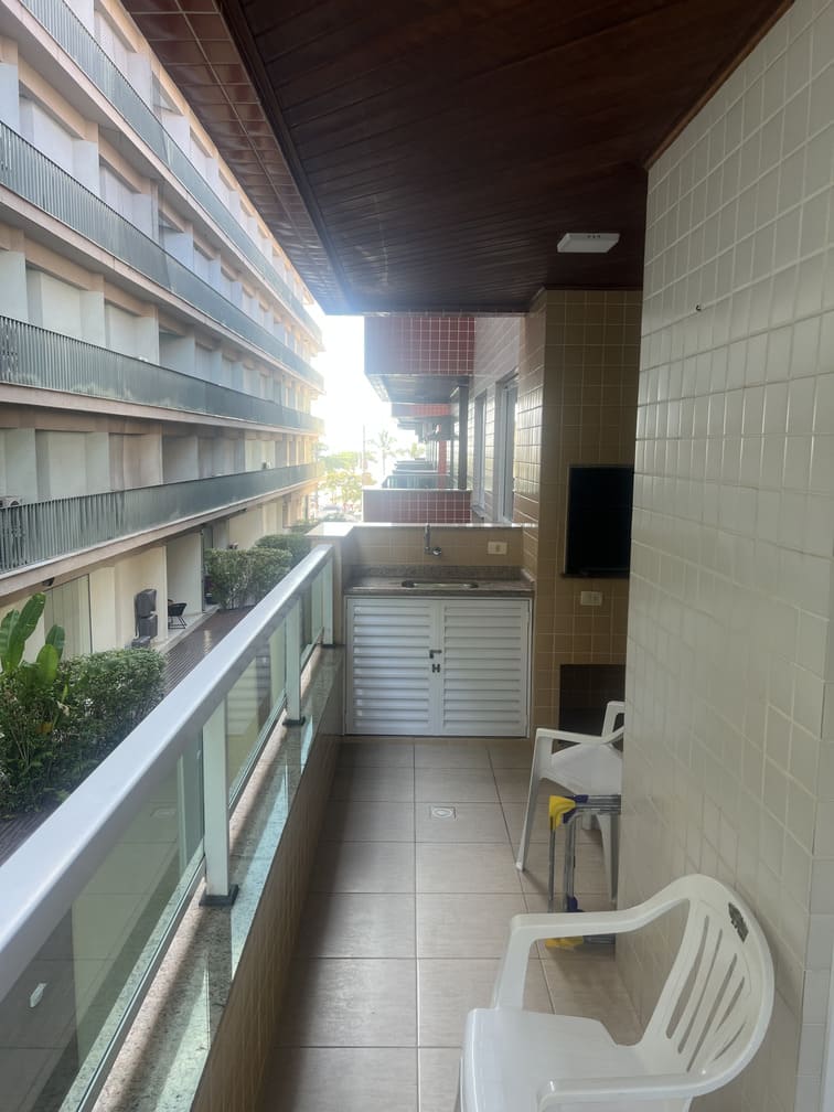 Descrição Completa: 3 Suites com ar condicionado sala de jantar, internet ,sala de tv , cozinha tipo americana completa , área de serviço, , varanda gourmet com churrasqueira vista para o mar e duas vagas de garagem coberta, apto lateral. Condomínio de frente para a Praia Grande, com sauna, academia, uma piscina aquecida e uma normal e espaço infantil. 20 mts da praia