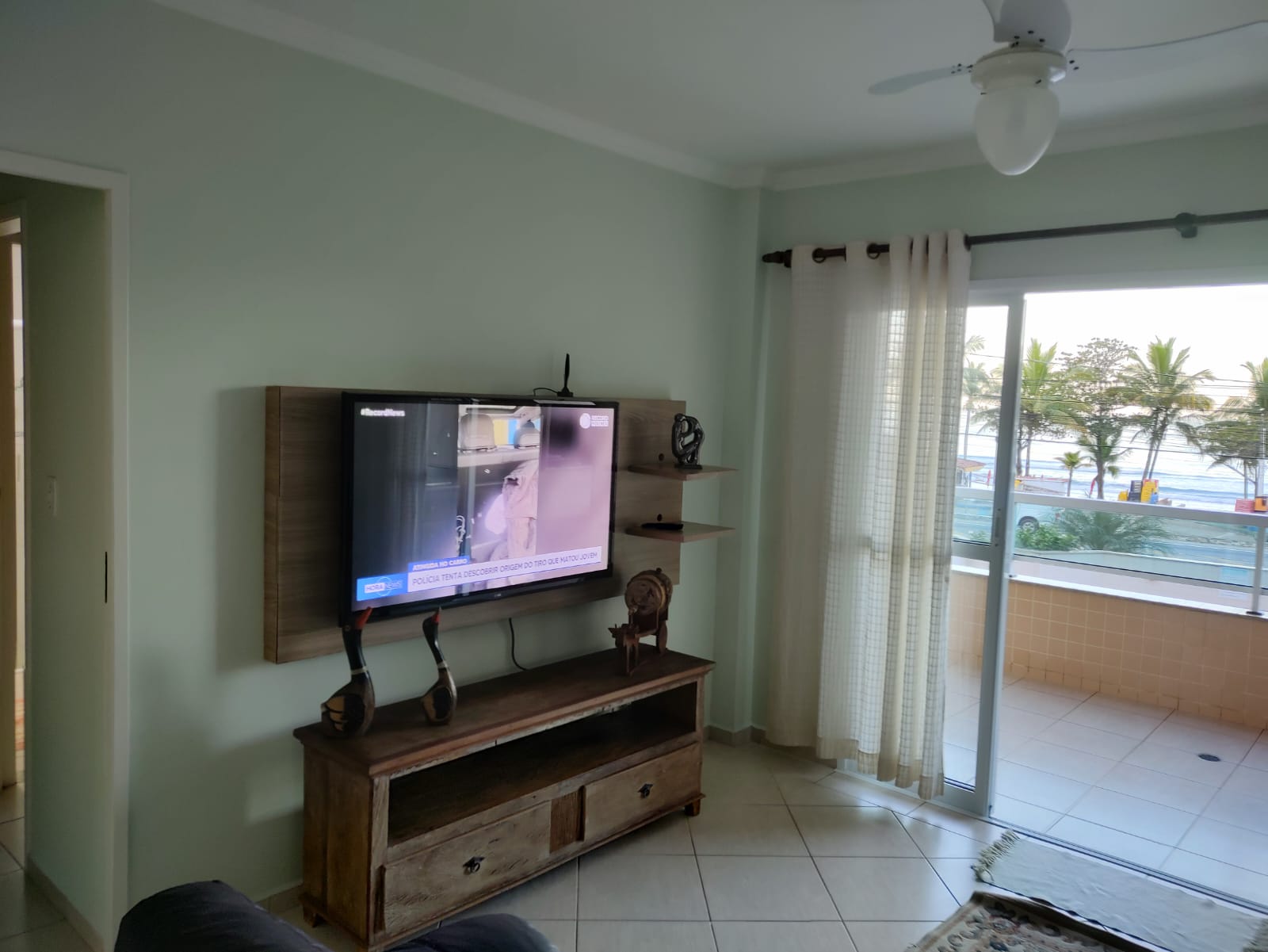 Descrição Completa: 2 dorm sendo 1 suite com ar condicionado, ventilador de teto, mais 1 banh social , sala de jantar internet , sala de tv, cozinha, área de serviço, varanda gourmet com churrasqueira com vista total para praia, uma vaga de garagem completa. Condomínio, piscina e apto de frente para Praia Grande, sauna, sala de jogos, segurança 24 h com câmeras externas. 20 mts da praia