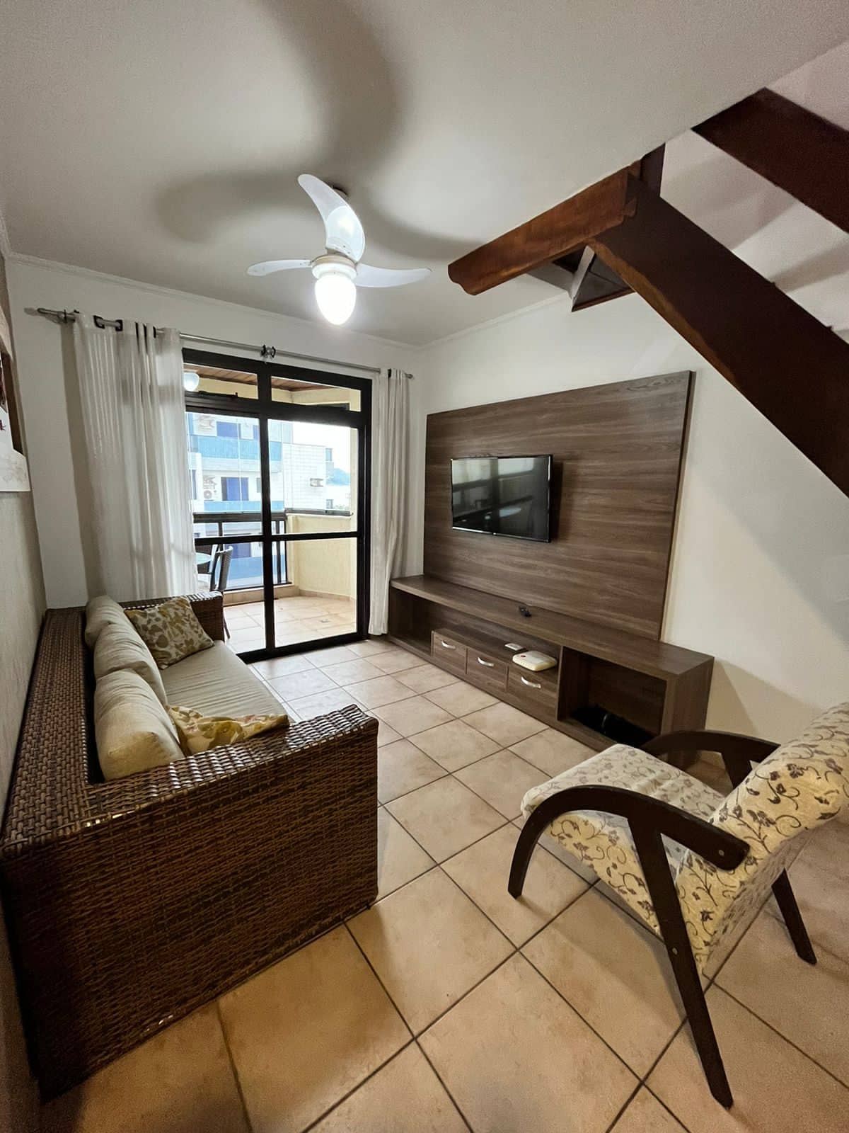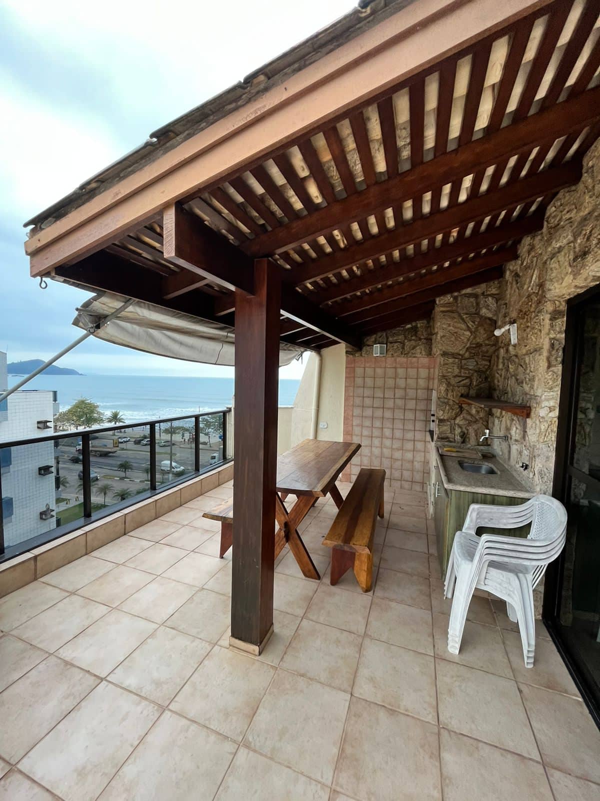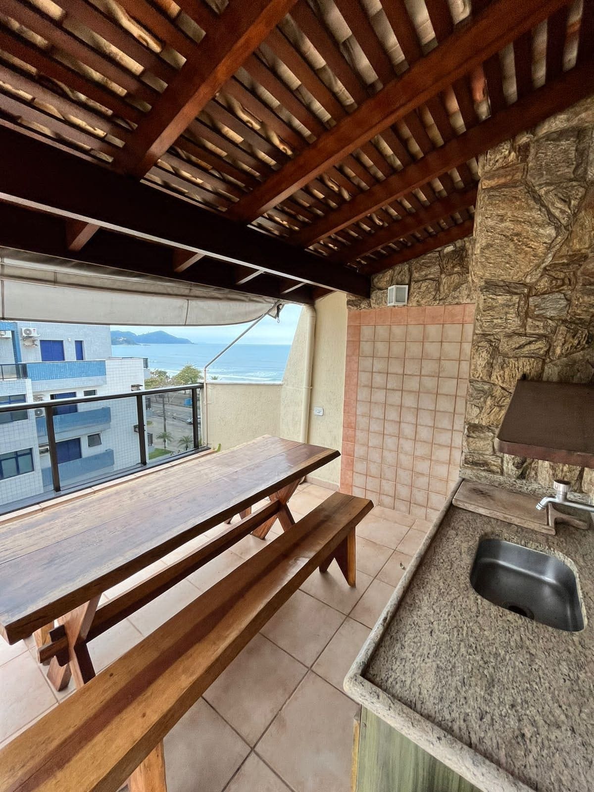 Descrição Completa: 3 dorm sendo 2 suites com ar condicionado, ventilador de teto, mais 1 banh. social cozinha completa 2 gerladeiras, sala de tv , sala de jantar, churrasqueira privativa espaçosa com ampla vista para o mar, duas vagas de garagem coberta . Condomínio com uma piscina aquecida e uma normal, sauna. 20 mts da praia
