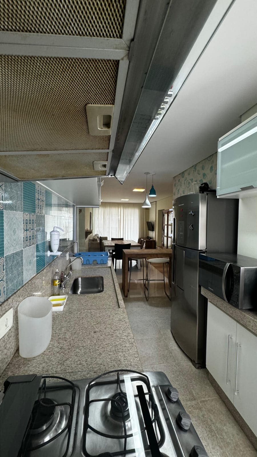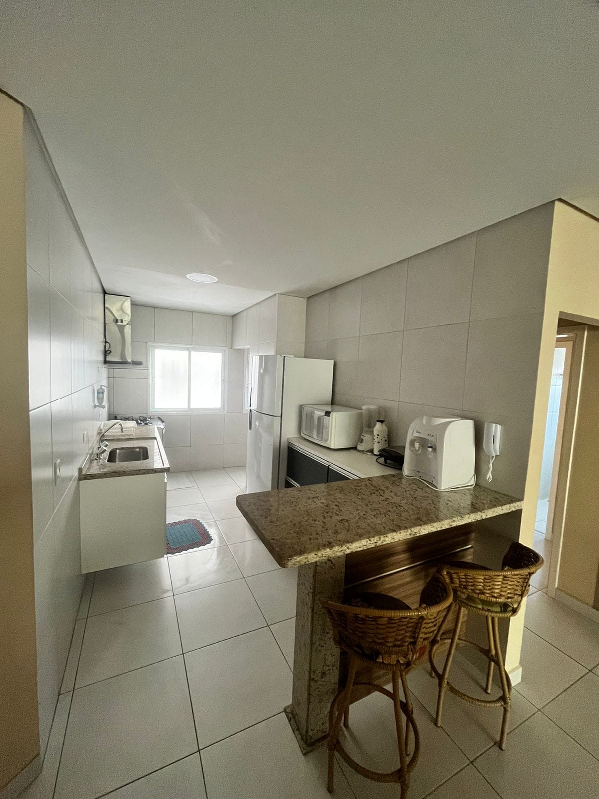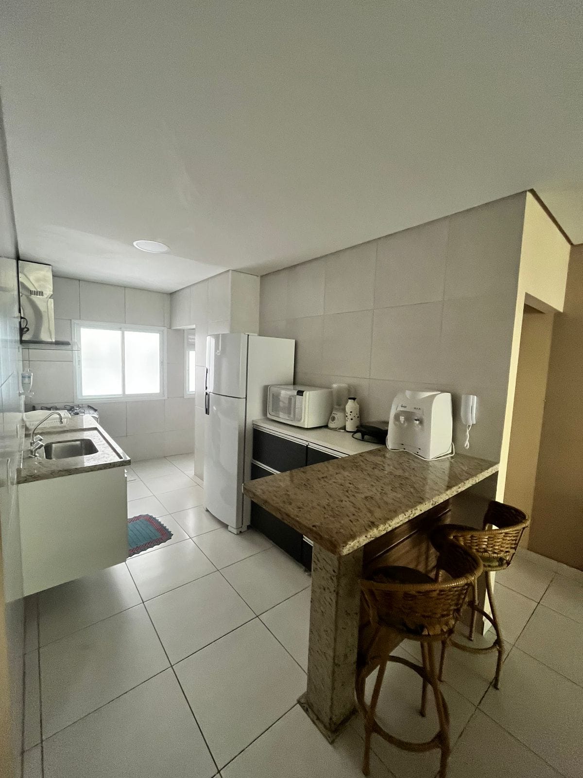 Descrição Completa: 3 dorm sendo 2 suites com ar condicionado, ventilador de teto, mais 1 banh. social cozinha completa 2 gerladeiras, sala de tv , sala de jantar, churrasqueira privativa espaçosa com ampla vista para o mar, duas vagas de garagem coberta . Condomínio com uma piscina aquecida e uma normal, sauna. 20 mts da praia