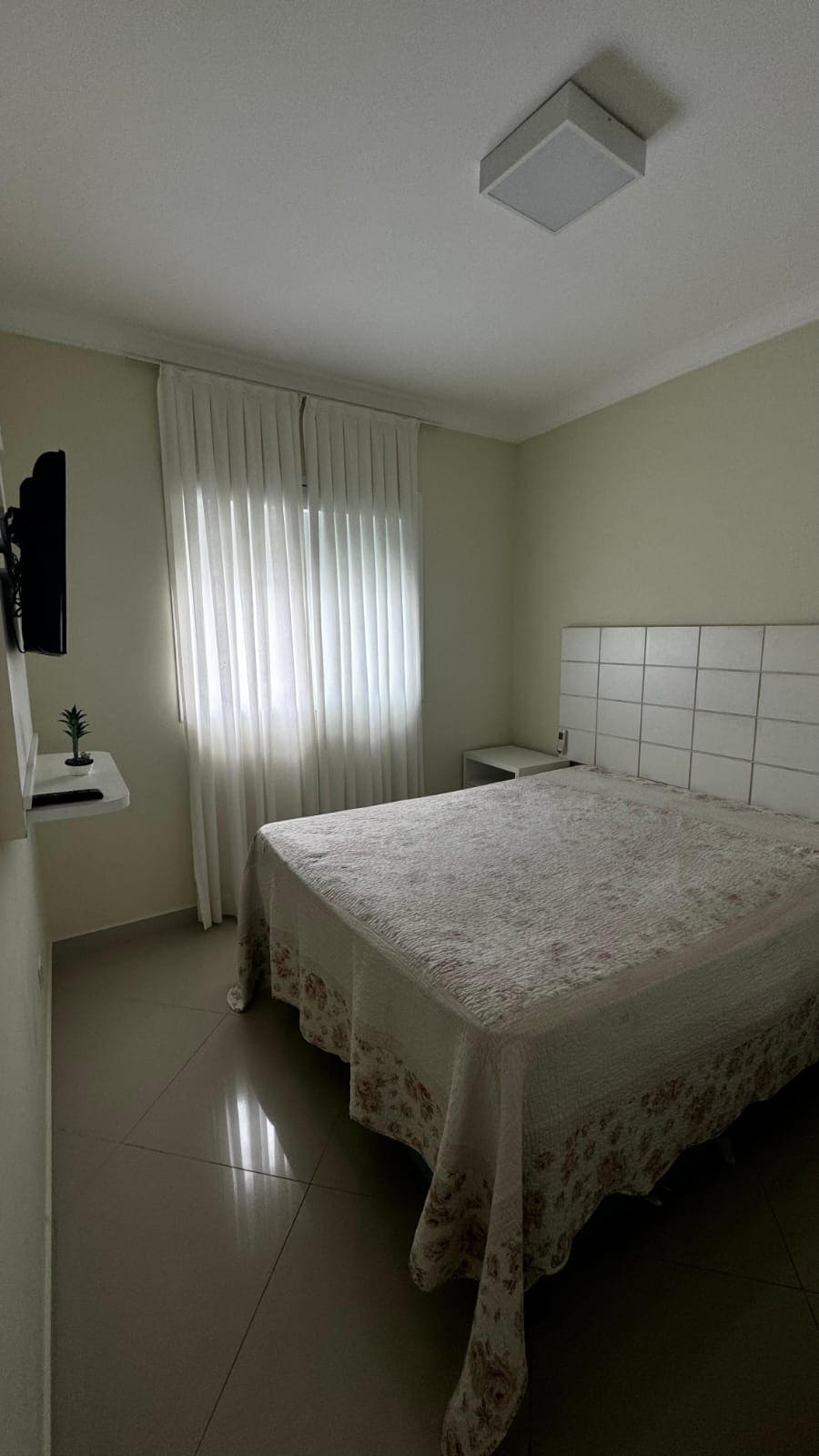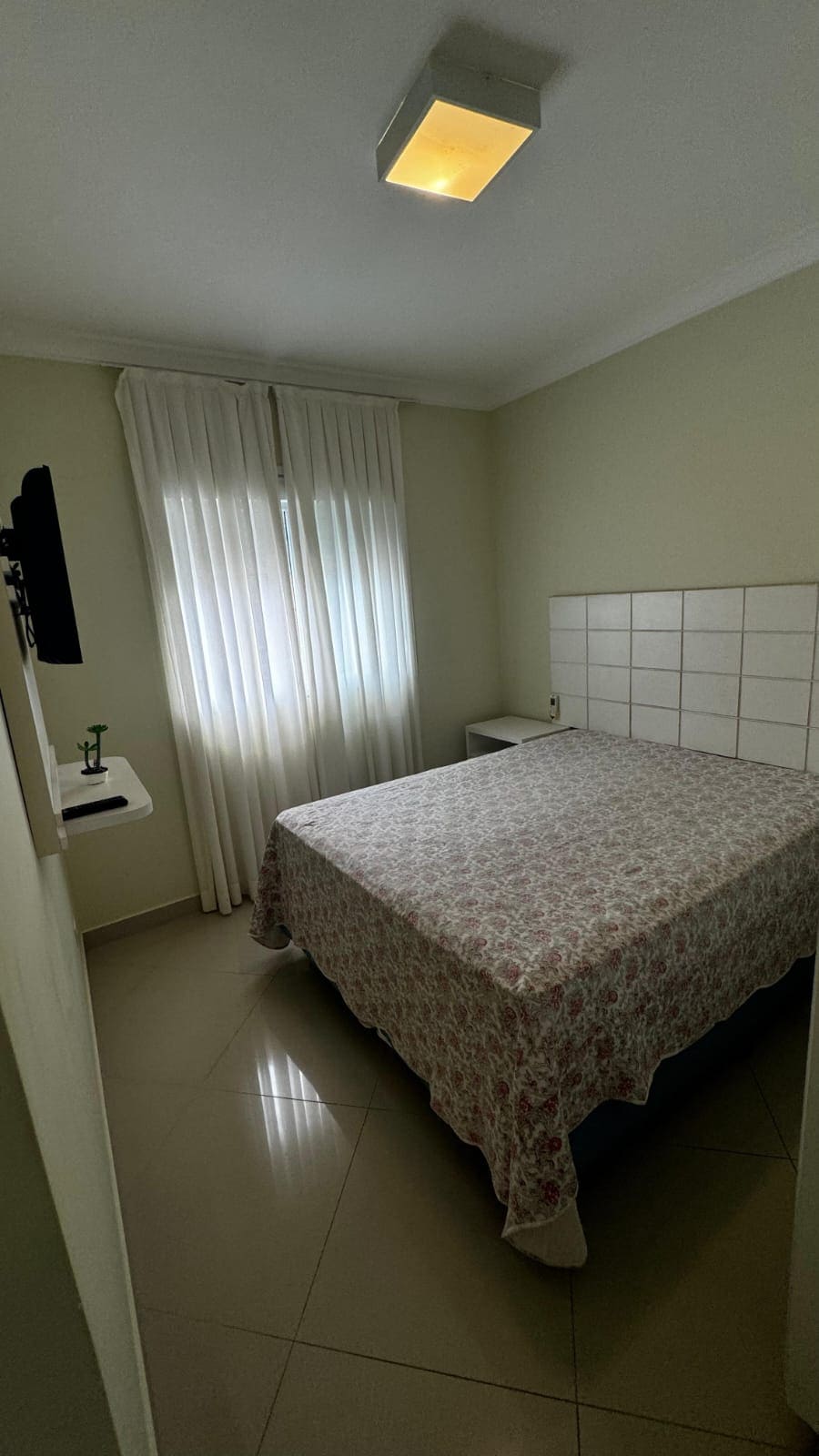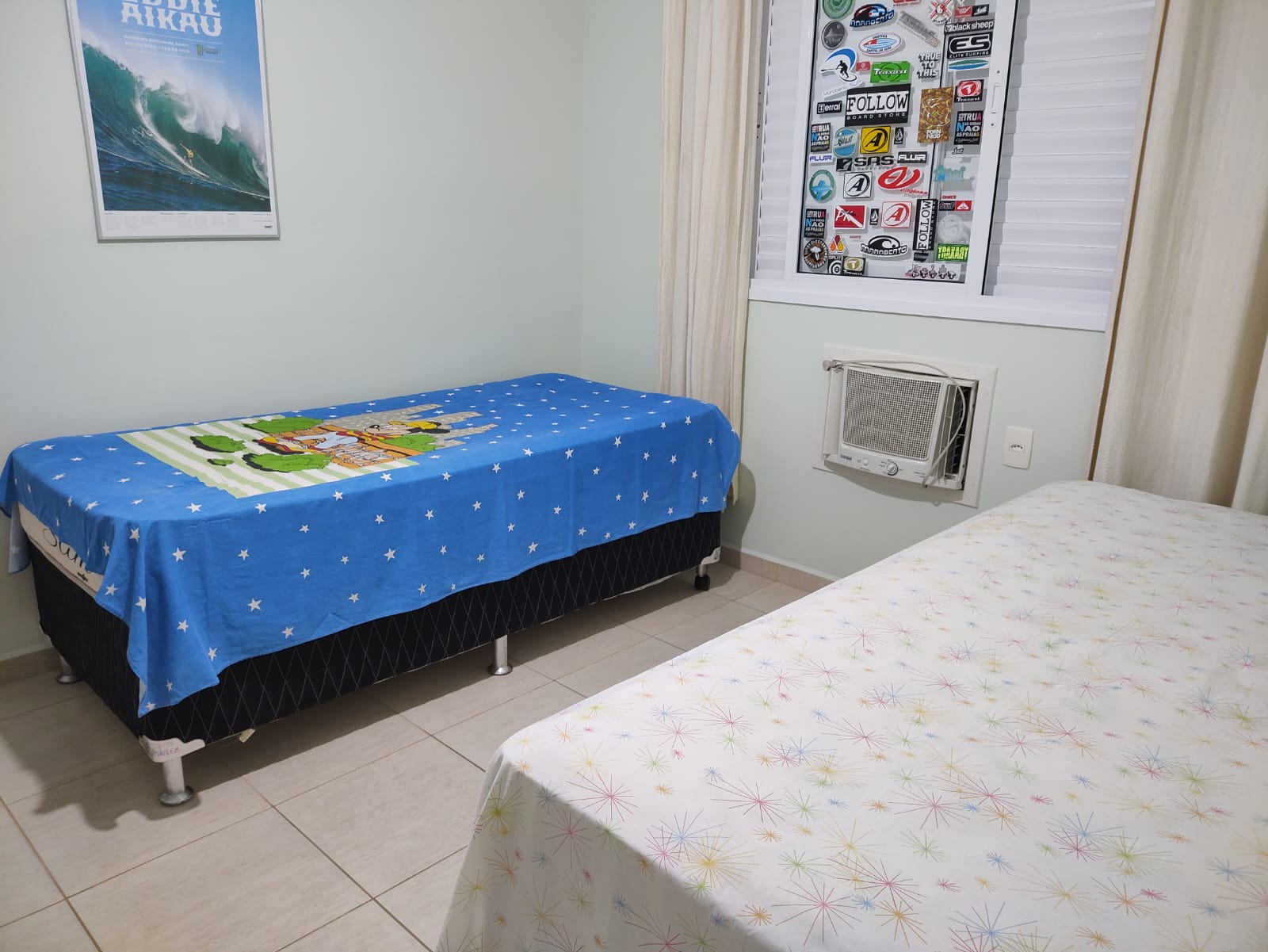 Descrição Completa: Até 5 pessoas. 2 dormitórios, sendo 1 suíte com ventilador de teto, + 1 banheiro Social, Cozinha completa, sala de Tv e jantar, sacada, elevador, 1 vaga de garagem coberta, portão eletrônico.Sem área de lazer.