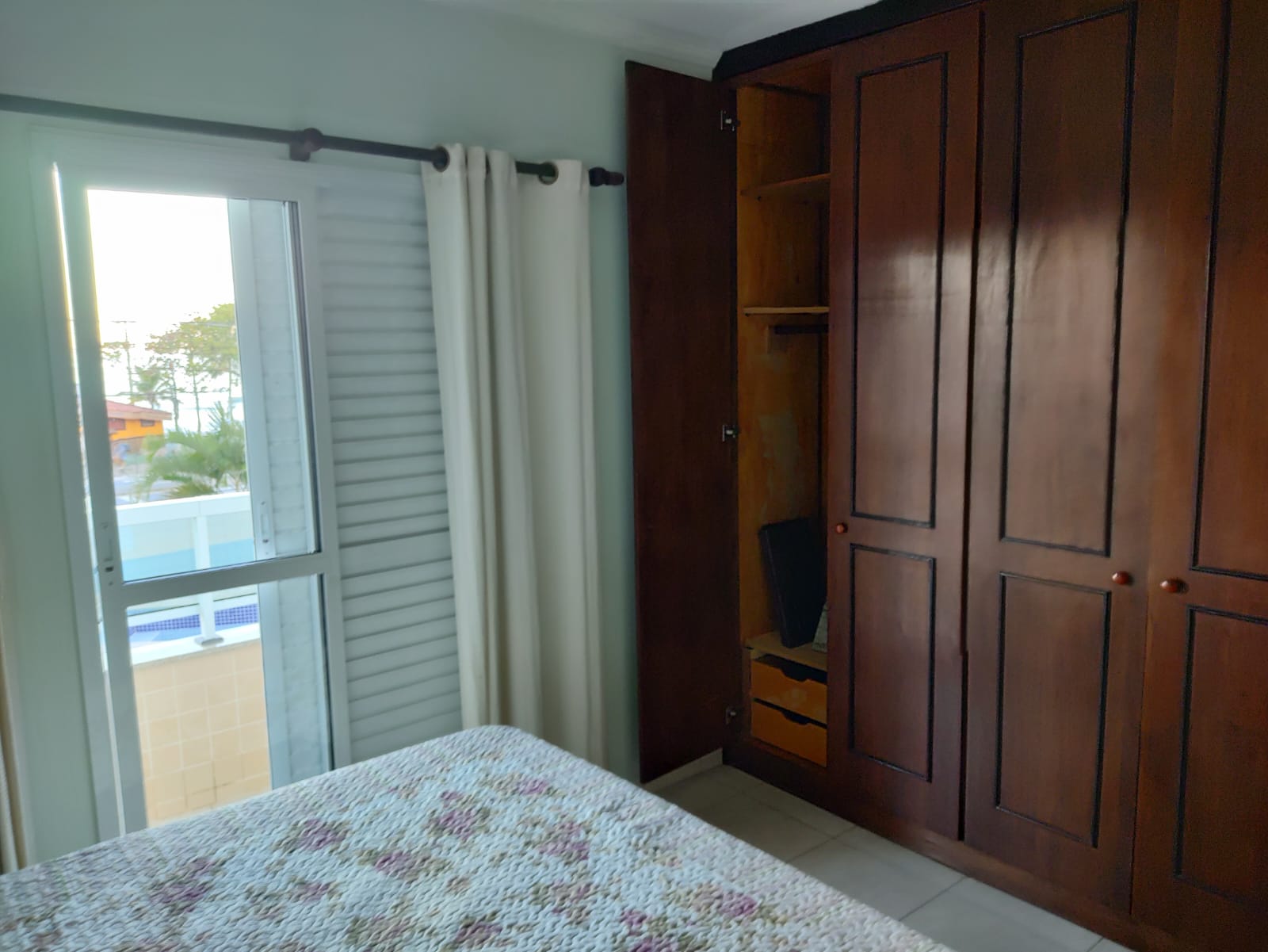 Descrição Completa: 2 dorm sendo 1 suite com ar condicionado ventilador de teto e tela mosquiteiro, mais 1 banh. social, sala de jantar com tela mosquiteiro, internet ,sala de tv , cozinha tipo americana completa , área de serviço, com máquina de lavar roupa, varanda gourmet com churrasqueira e uma vista parcial do mar, uma vaga de garagem coberta. Condomínio e piscina de frente para Praia Grande , sauna, sala de jogos, segurança 24 h com câmeras externas . 20 mts da praia