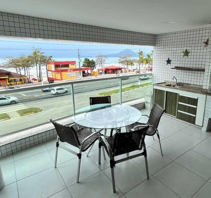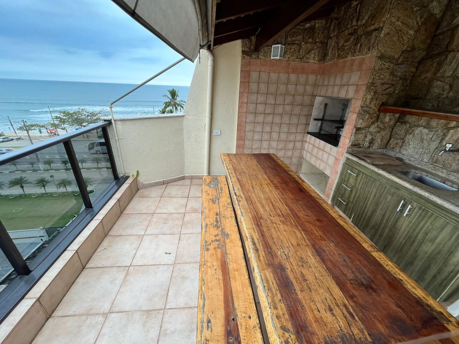 Descrição Completa: 3 Suites com ar condicionado sala de jantar, internet ,sala de tv , cozinha tipo americana completa , área de serviço, , varanda gourmet com churrasqueira vista total para o mar e duas vagas de garagem coberta. . Condomínio de frente para a Praia Grande, com sauna, academia, uma piscina aquecida e uma normal e espaço infantil. 20 mts da praia